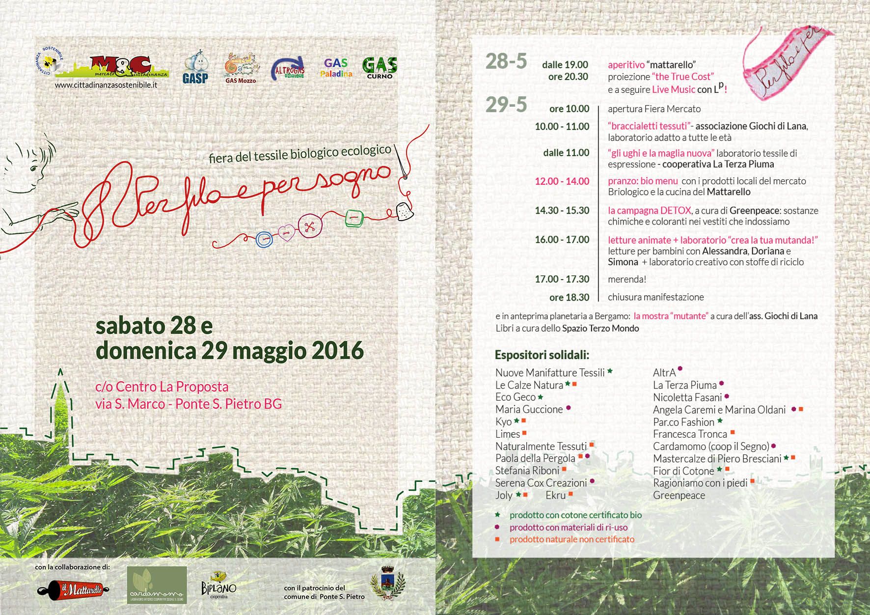 Torna “Per filo e per sogno”, la fiera del tessile biologico ecologico organizzata quest'anno dai Gas - Gruppi di Acquisto Solidale - di Paladina, Curno, Ponte S. Pietro, Mozzo e Bergamo (AltrogasFontana) in collaborazione con Mercato&Cittadinanza e il patrocinio del comune di Ponte San Pietro (BG).