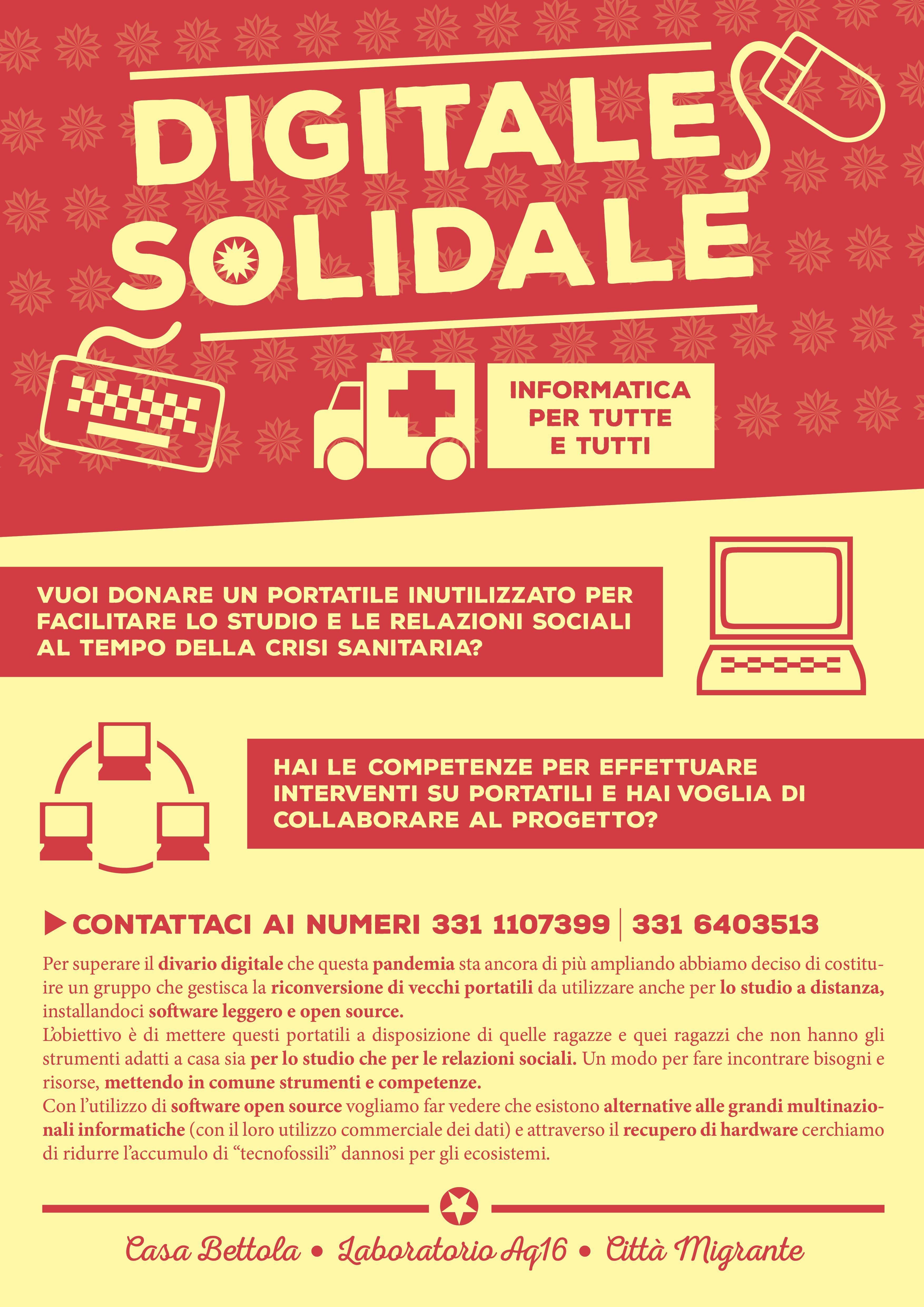 Nelle ultime settimane poi è partito il progetto Digitale Solidale per aiutare ragazze e ragazzi che non hanno gli strumenti informatici per affrontare questo periodo scolastico.