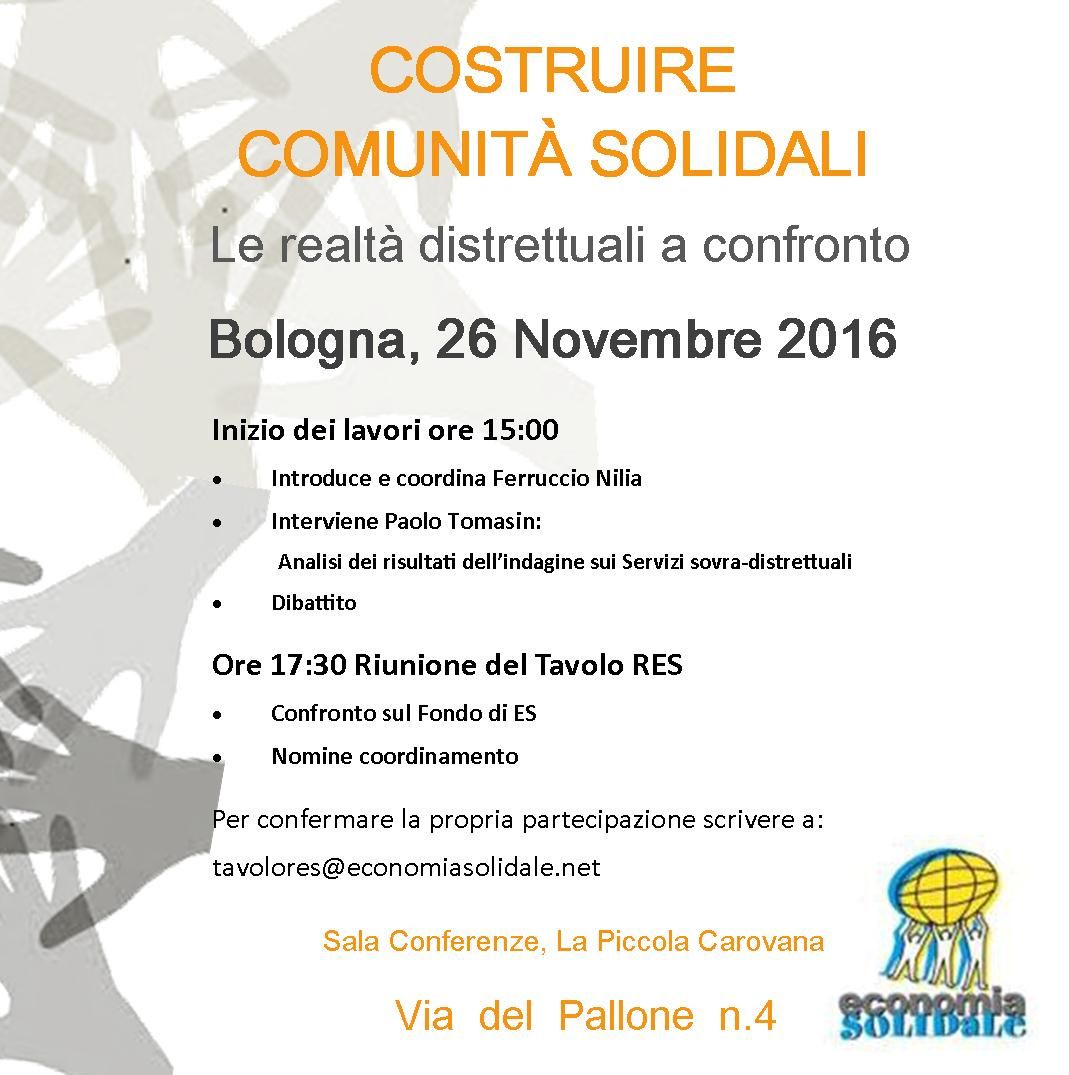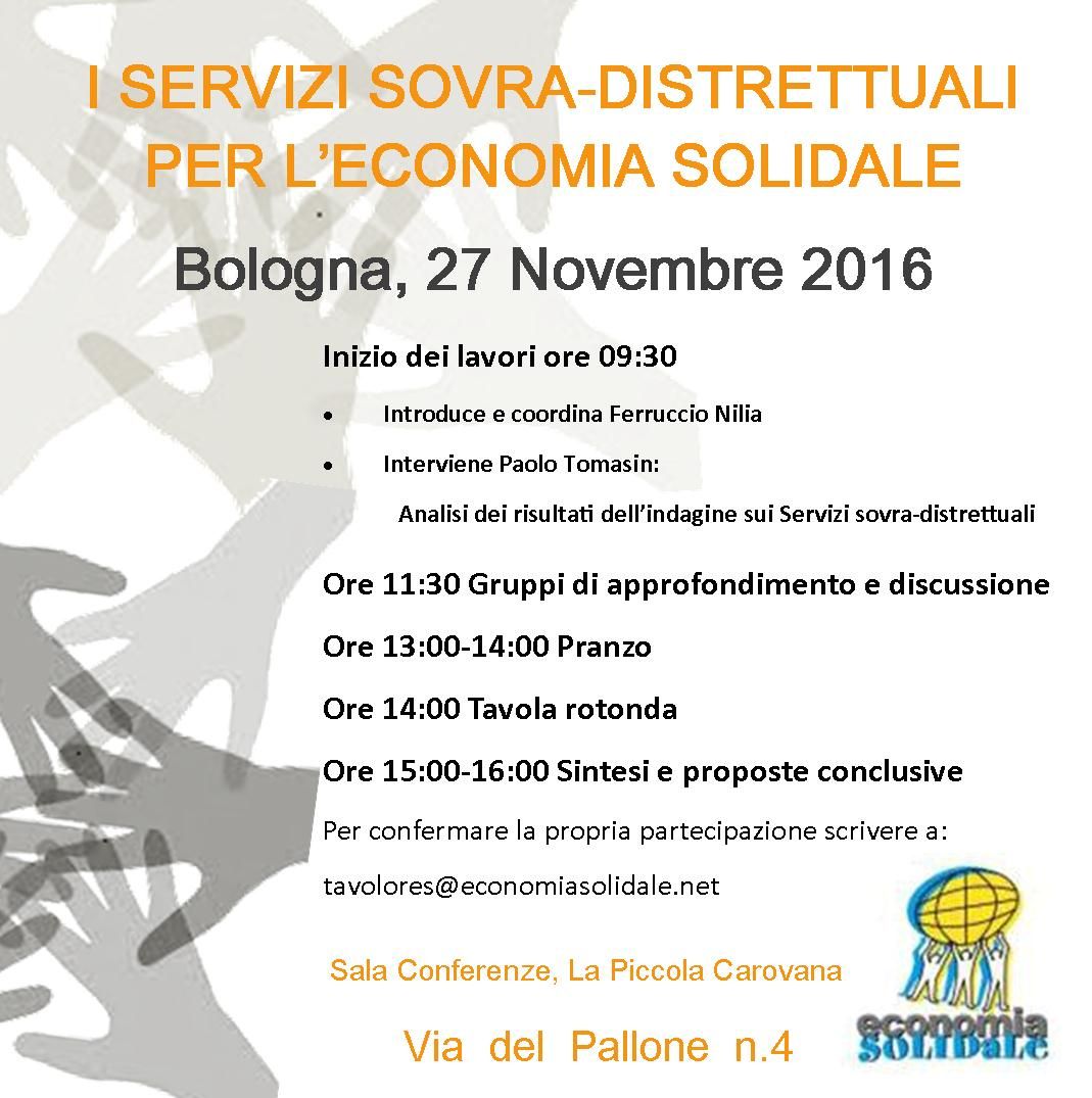 Il Tavolo RES ha organizzato per il 26 e 27 novembre 2016 a Bologna un incontro seminariale sui servizi sovra-distrettuali, cioè sui beni e servizi forniti da soggetti ecosol a più territori/comunità e che quindi non hanno relazioni “controllate” nelle filiere locali.