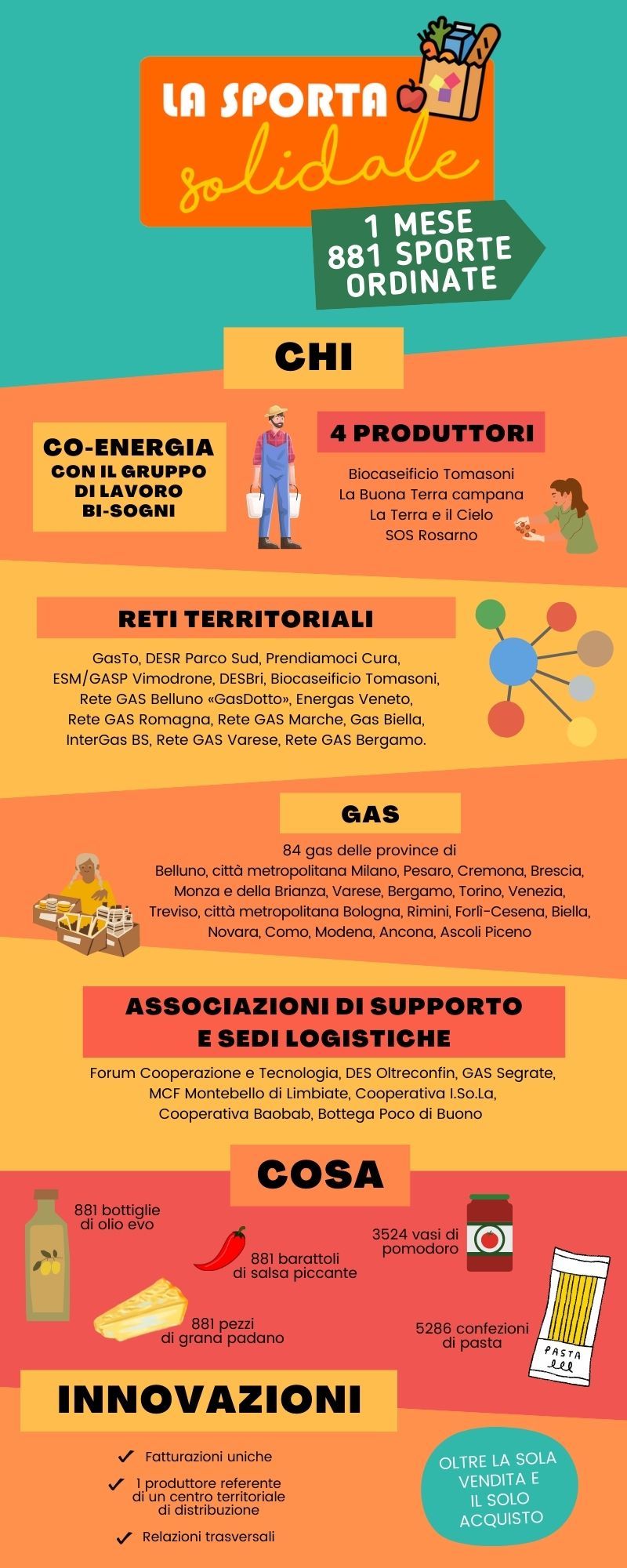 Le sporte ordinate? 881, i produttori quasi non ci potevano credere. Le reti territoriali coinvolte? Alcune socie di CO-energia, altre di Gas che si sono avvicinati, incuriositi dall'iniziativa e subito sono stati catturati dall'idea dell'azione collaborativa, e si sono messi a creare una rete laddove questa ancora mancava. I Gas coinvolti sono stati complessivamente 84, oltre 3 Gap e 2 aziende, di tantissime province, da Belluno a Torino, da Como ad Ascoli Piceno.